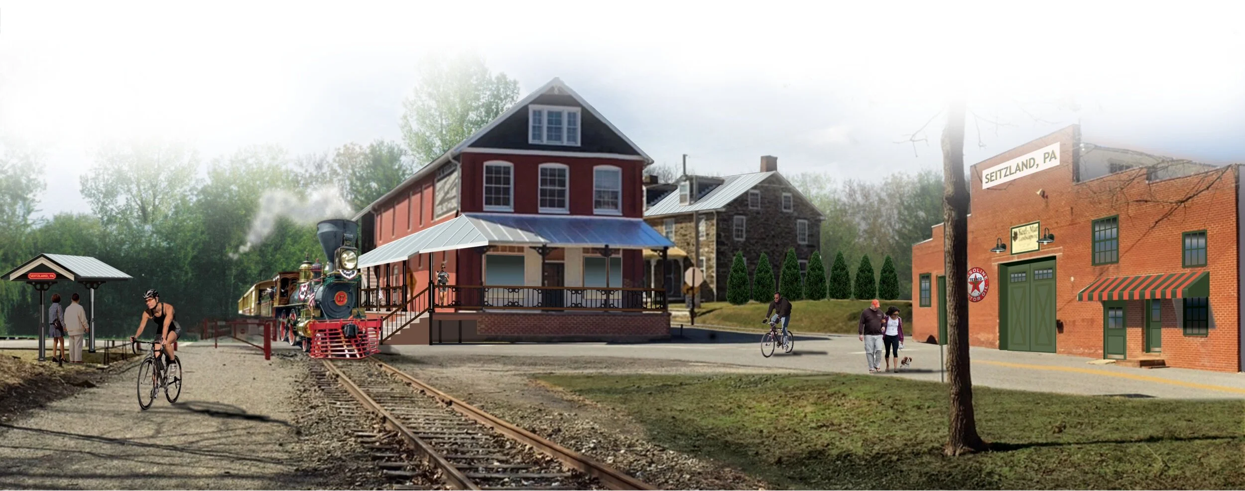 The Seitzland Village Project proposes an adaptive re-use of a group of heritage buildings in the immediate vicinity of the York County Heritage Rail Trail. These heritage buildings are key to the development of a vibrant community that will elevate the identity of the Village and serve as a vital testament to York County’s history. Through this project, we aspire to provide services for the rail trail; capitalize on local resources and artisans; celebrate and share our unique identity and culture; and, in the process, help to build a strong sense of community, contribute to the local economy, and spark tourism by providing a unique and attractive destination for recreational and commercial visitors to the County. Originally, the rail line gave entrepreneurs the opportunity to establish businesses along its corridor. Today, circumstances and opportunities have aligned to foster a rebirth in a contemporary fashion.